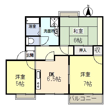 和6、洋7、洋5、DK6.5、1階、角部屋、バストイレ別、ガスキッチン、独立洗面所、洋室、クッションフロアー、室内洗濯機置場、浴室シャワー、収納、バルコニー、下駄箱、駐車場2台込、駐輪場、賃貸保証システム、町費込、住宅保険要加入 |